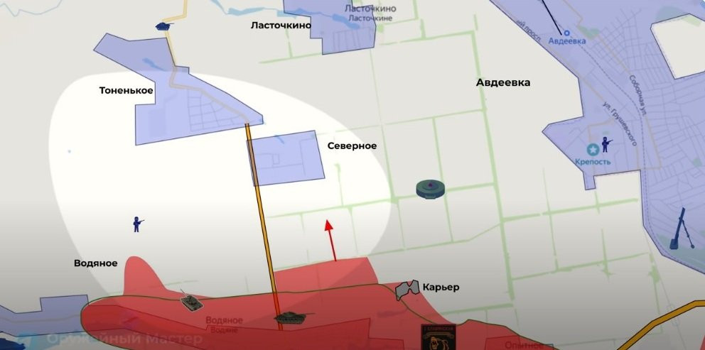 Telegram-канал "Оружейный мастер" сообщает о планомерном продвижении российских войск вокруг Авдеевки.