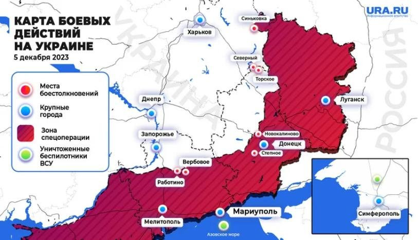 Свежая карта боевых действий на Украине по данным на 05.12.2023