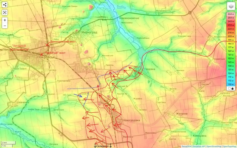 Эти фланговые атаки стали возможны после того, как были освобождены Новогродовка и Цукурино, которые обеспечивали защиту города с двух направлений. Ситуация в Селидово напоминает сценарии, наблюдаемые ранее в Авдеевке, Угледаре и Торецке.