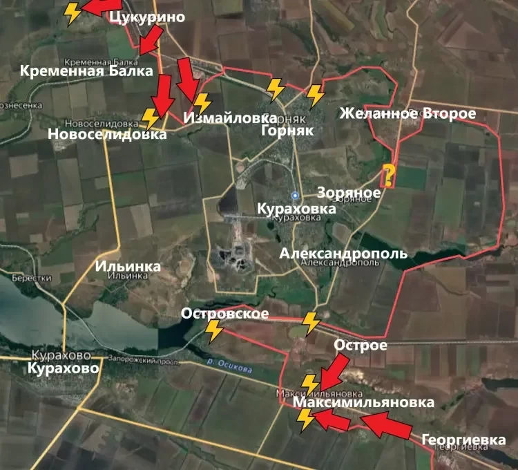 На Донецком направлении после продолжительных ожесточённых боёв большая часть населённого пункта Максимильяновка, расположенного на подступах к Курахово, перешла под контроль российских сил, сообщает военкор Евгений Лисицын в своём Telegram-канале.