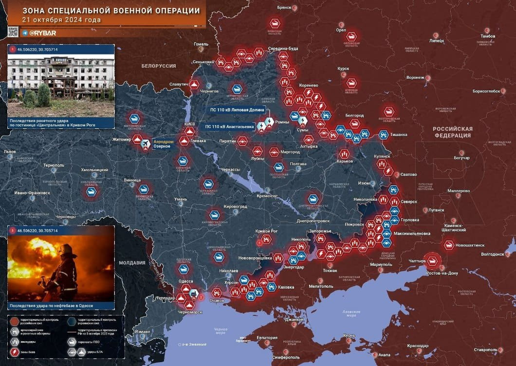 Новая карта боевых действий в зоне СВО на Украине от 22.10.2024
