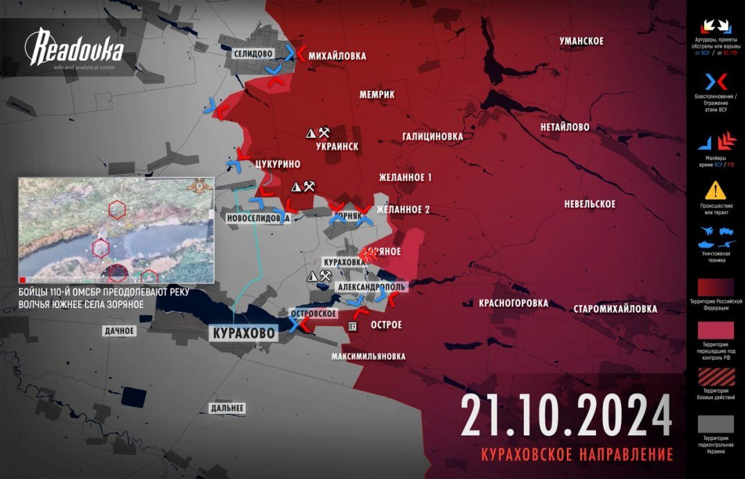 Кроме того, он сообщил о потере украинскими войсками Зоряного, что, по его мнению, значительно усложняет оборону Кураховки.