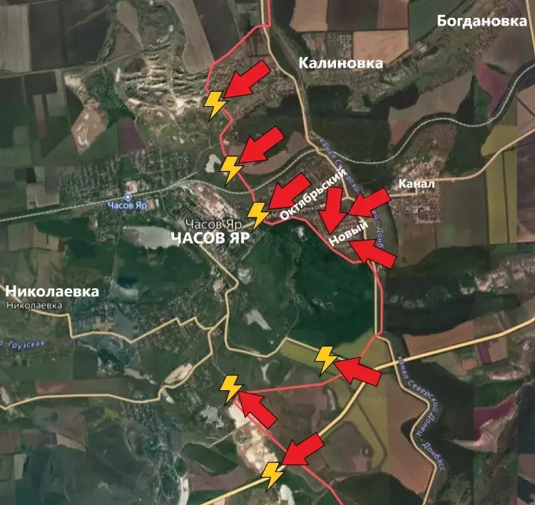 ВС РФ продвинулись западнее и юго-западнее Калиновки, а также взяли под контроль микрорайоны Октябрьский и Новый в Часов Яре! Очень надеюсь, что сегодня поступят дополнительные подтверждения этой информации. Пока что сообщается, что за прорыв осуществила 98 гвардейская воздушно-десантная дивизия.