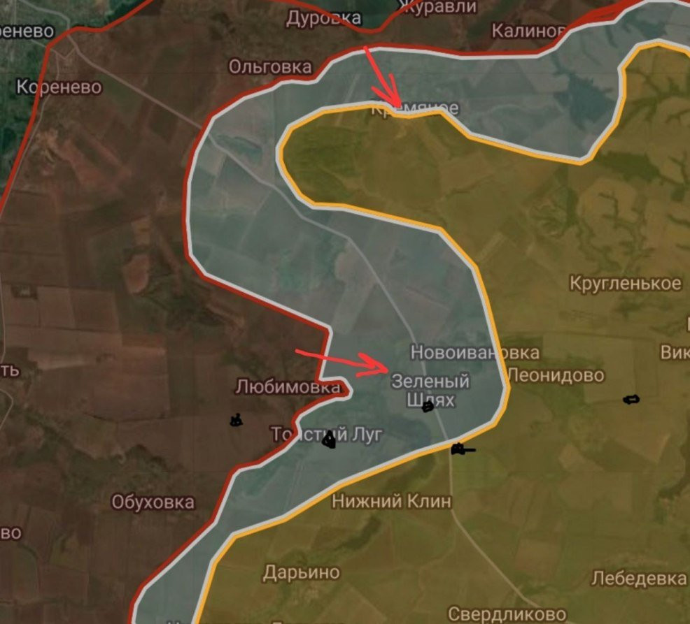 По данным Telegram-канала "БелВПО", ВС РФ имеют тактические успехи в районе Любимовки давят в направлении Толстого Луга. Отмечаются встречные бои в районе Кремяного.