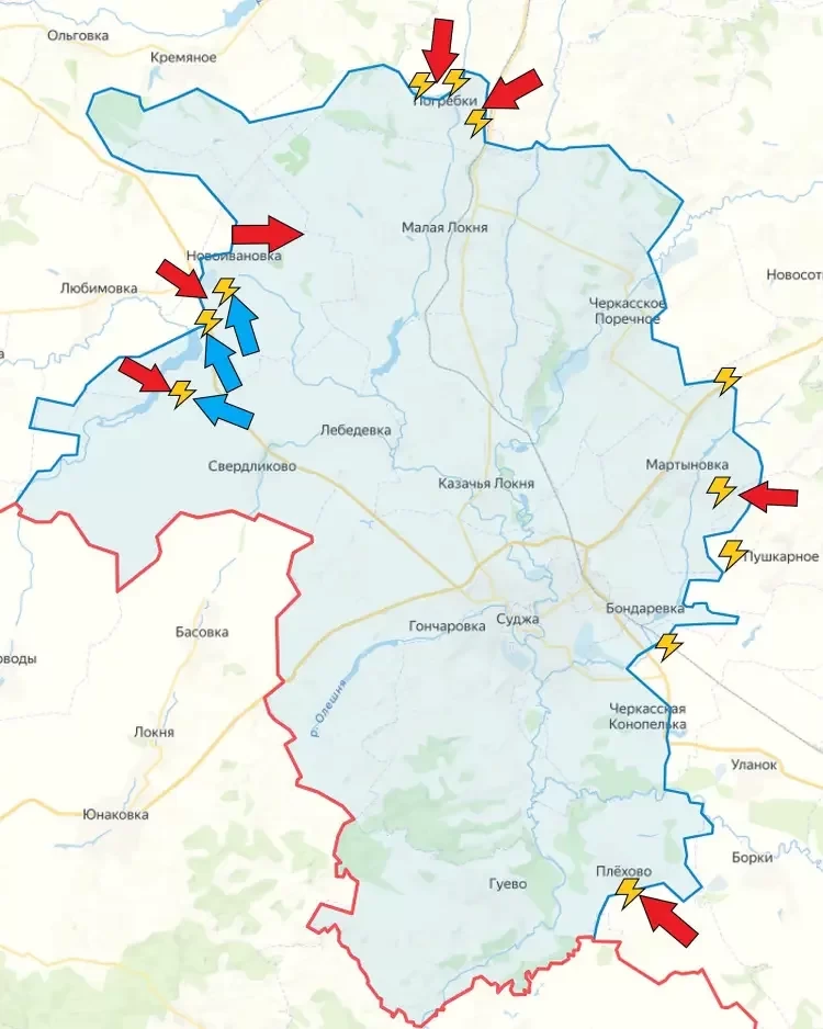 Также отмечаются боестолкновения западнее Погребков, Мартыновки и Плехово, отмечает Telegram-канал "БелВПО".