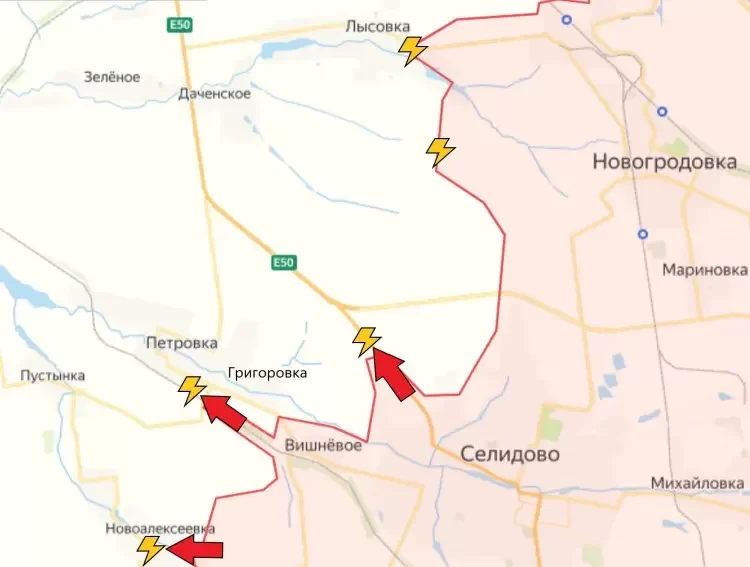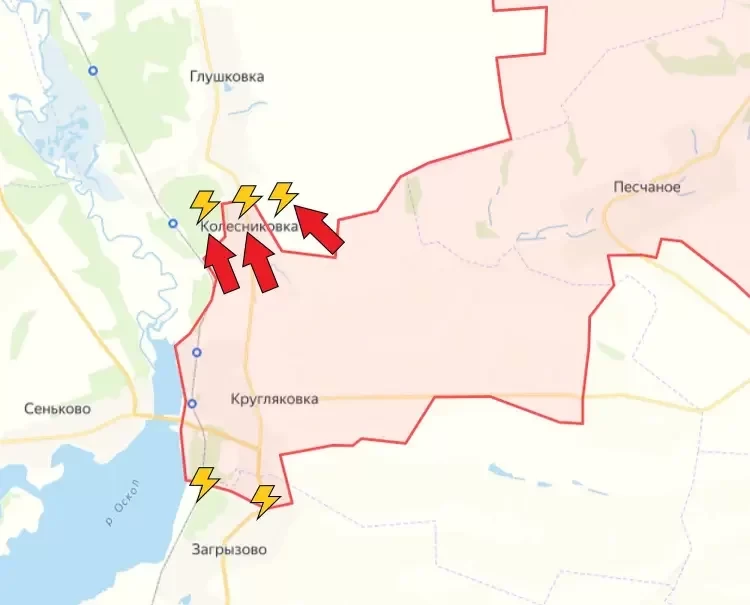 Южнее идут встречные бои у Загрызово. Пока что о начале полноценного штурма населённого пункта не сообщалось.