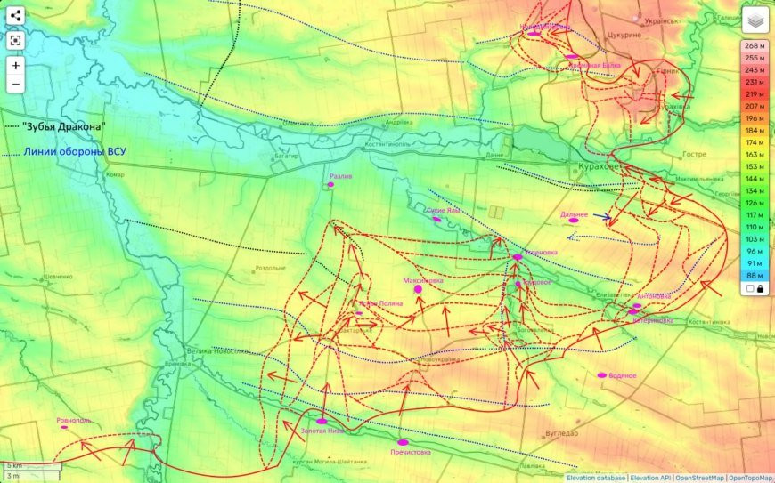 Одним из значимых успехов на северо-кураховском участке стало продвижение на Солцевку: российские войска прорвались на глубину 2 км и заняли позиции на окраине села. Вечером продолжающиеся бои в районе Берестков позволили частично взять поселок под контроль, что приближает его освобождение.