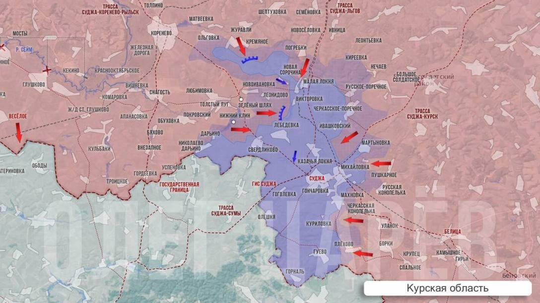 Олег Царёв в своём Telegram-канале сообщает о том, что ситуация в Курской области остается для наших военных тяжёлая, причём с нашей стороны новостей совсем мало, а достоверность тех, что есть, пока вызывает сомнения. Так, были сообщения, что ВС РФ зашли в Дарьино, а кто-то даже успел написать, что оно полностью взято под контроль. Проукраинский Аналитик Bild Рёпке написал, что наши войска смогли отбить Погрбеки и Дарьино, но понесли при этом очень серьезные потери, в том числе, 28 единиц бронетехники.