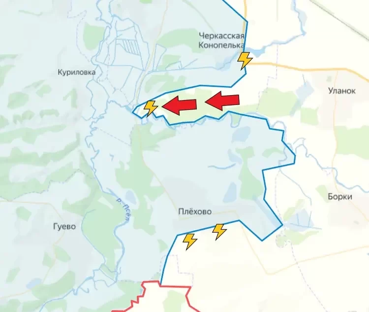 Также уточняется, что на Суджанском направлении российские войска давят в районе Погребки, Орловки, Марьевки и Новой Сорочины, продолжаются встречные бои.