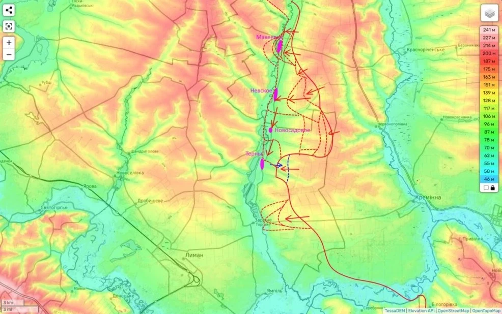 А что касается района Двуречного, то вероятно это стало в т.ч. результатом боев за северо-восточные окраины Купянска, для которых противник вынужден был стягивать силы откуда только можно с данного участка. Вот и окопы на западном берегу Двуречного остались пустыми. Чем мы и воспользовались.