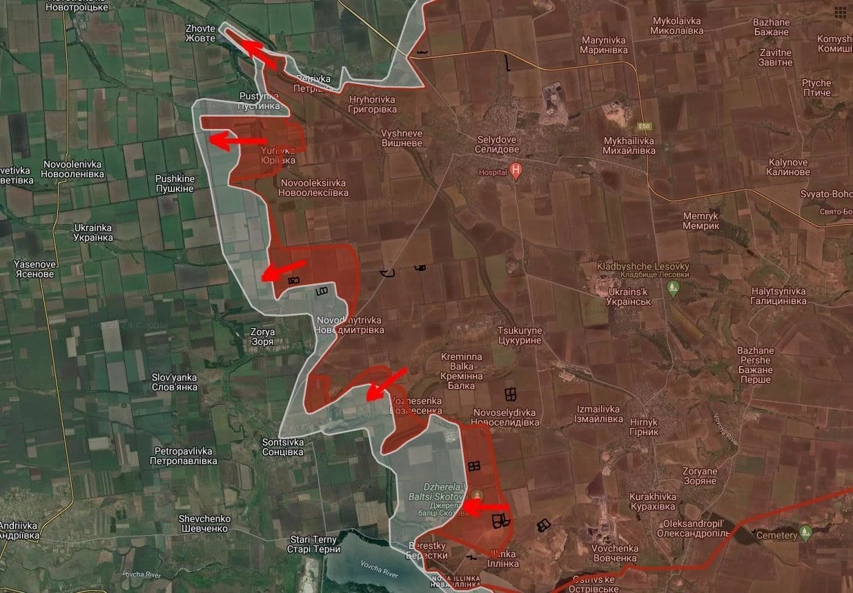 Южнее Великой Новосёлки ВС РФ продвинулись вдоль р. Кашлагач на глубину до 2 км.