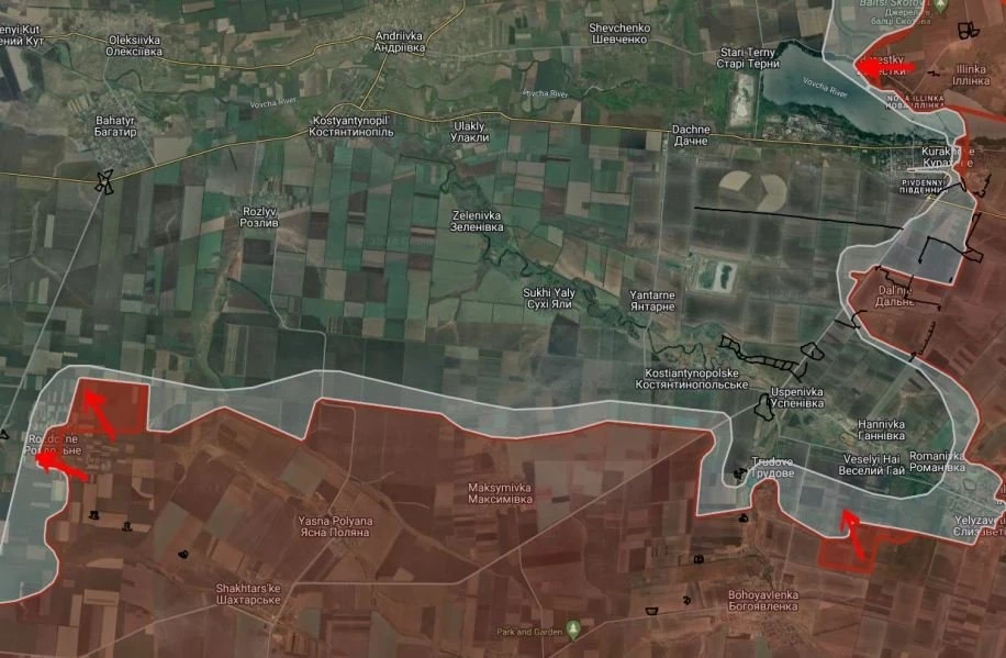 В свою очередь западнее Петровки российские войска продвинулись вдоль р. Солёная на участке шириной до 2.15 км и ведут штурмовые действия на юго-восточной окраине Жёлтого.