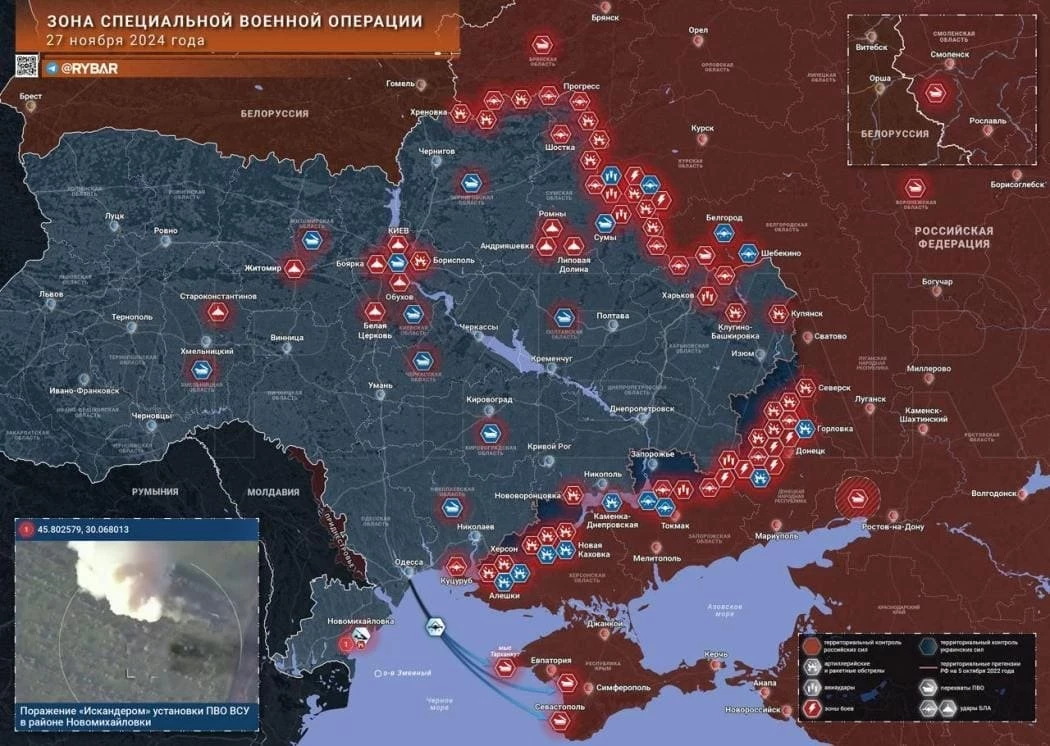 Новая карта боевых действий в зоне СВО на Украине на 28 ноября