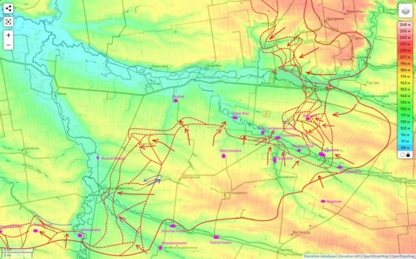 Но основной удар сейчас наша группировка «Восток» проводит не здесь, а чуть северо-западнее, пытаясь двигаться вдоль реки Сухие Ялы на север.