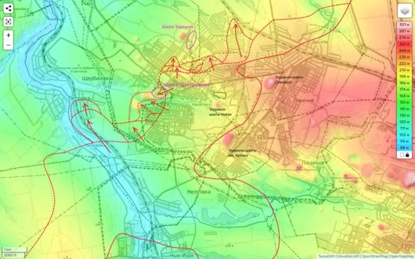 Также наши части успешно наступали в центральной части города. Собственно, утеря контроля над шахтой и терриконами, и должна была дать такой результат.