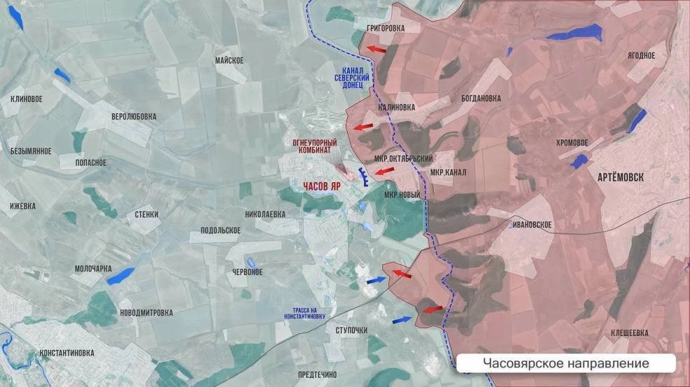 В Часов Яре мкр Октябрьский перешел под контроль ВС России. Несмотря на плотную работу нашей артиллерии, ВСУ ещё удерживает свои позиции на огнеупорном комбинате. Там продолжаются тяжелые бои.