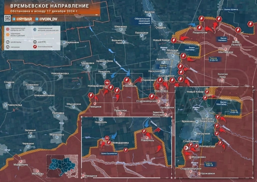 На Времьевском направлении штурмовики ВС РФ наступают к северу от Макаровки, идут бои в Благодатном и Сторожевом