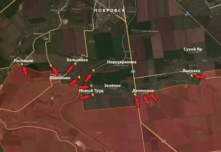 На Покровском направлении армия России продолжает наступление к югу от Покровска.