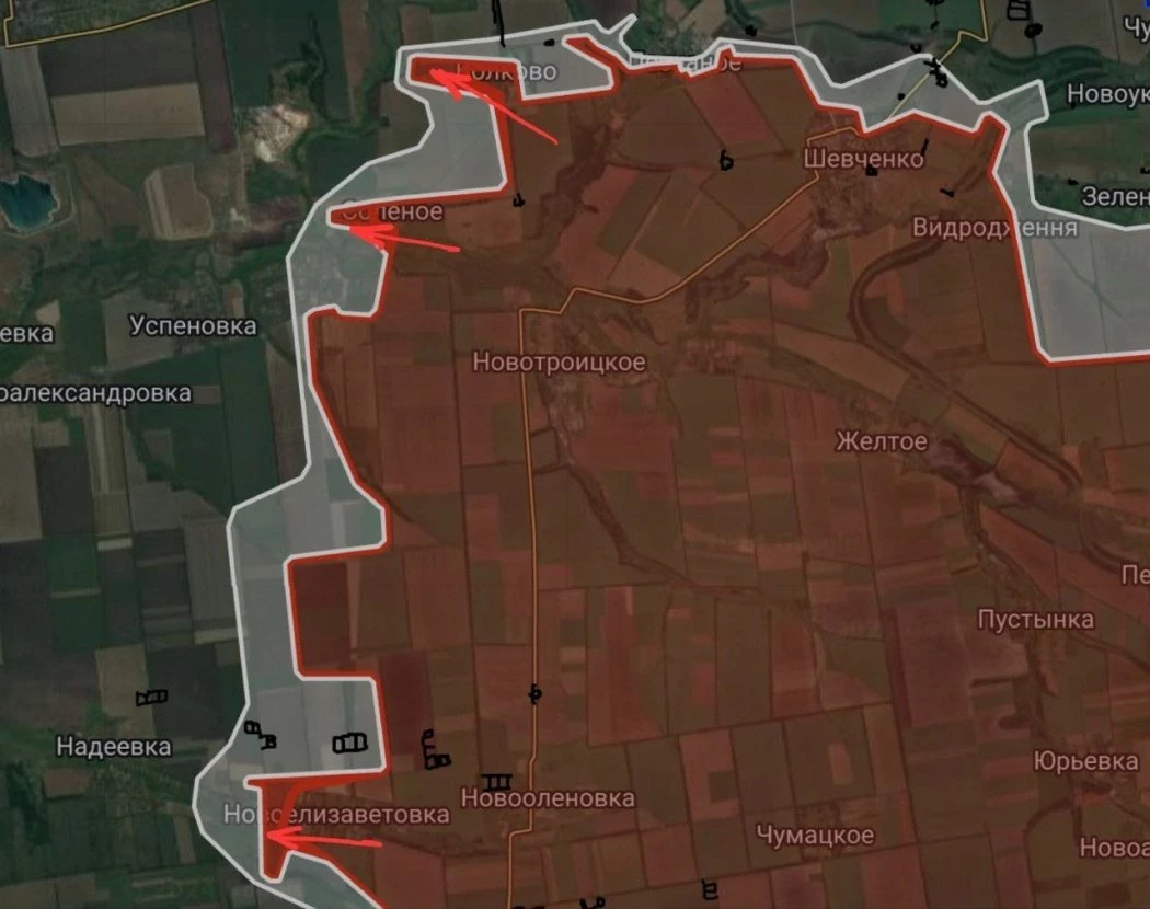 ВС РФ расширили контроль территории западнее Волково на глубину до 800 м., в Солёном на глубину до 600 м. и в районе Новоелизаветовки на участке шириной до 1.42 км на глубину до 650 м.