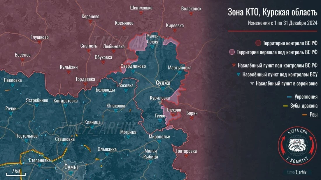 Карта боевых действий в Курской области на сегодня. Данные на 3 января