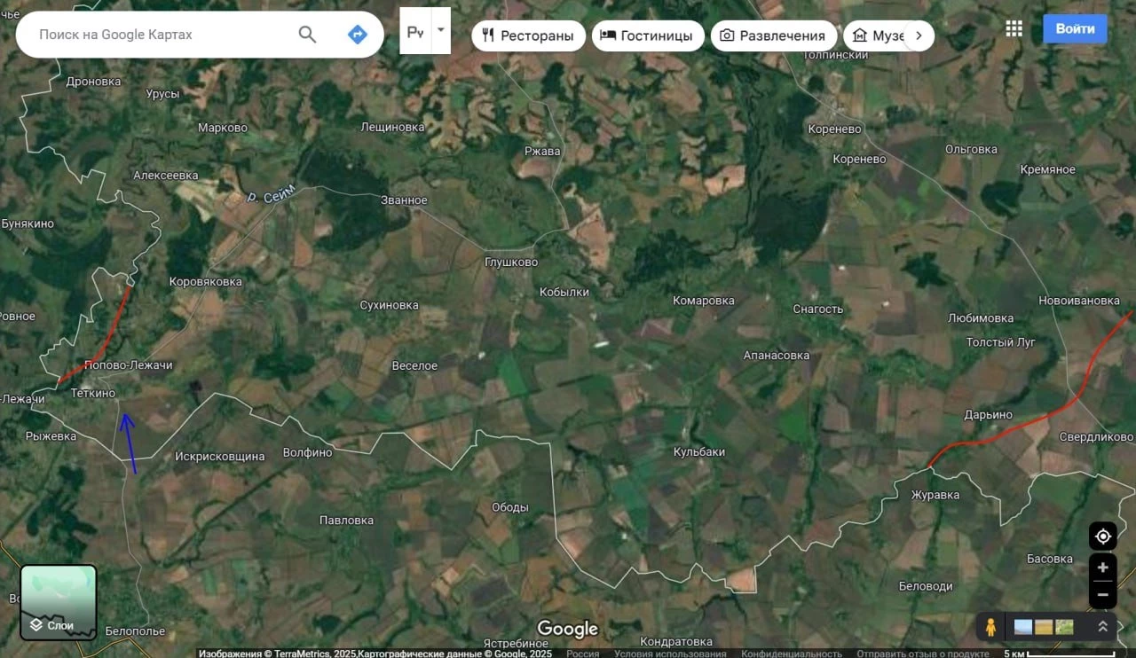 Также идут атаки ВСУ в районе Тёткино, где противник пытается давить на российскую оборону с двух сторон. Вполне вероятно, что ВС РФ скоро потеряет Тёткино (если противник введет дополнительные войска в бой и здесь).