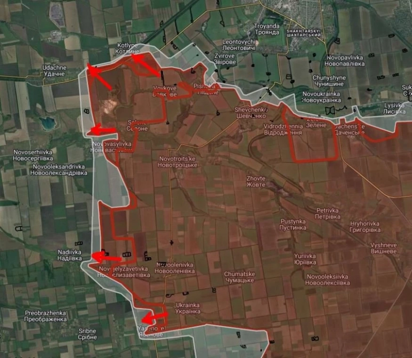 По словам Рогова, солдаты российской армии также продвинулись южнее вдоль реки Сухие Ялы в районе села Янтарное, освободив порядка 7 квадратных километров.