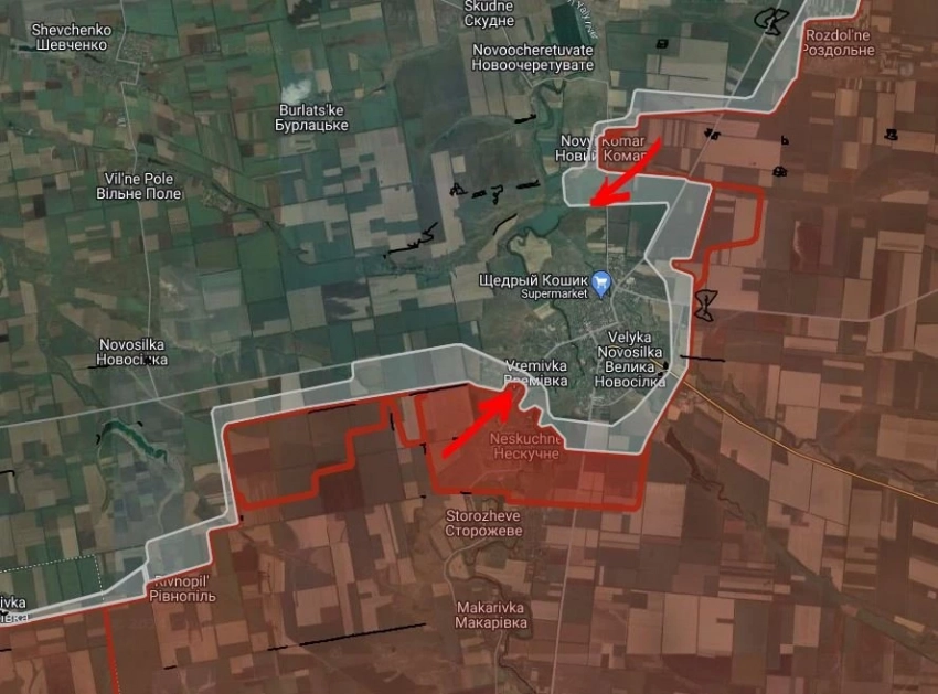 На Великоновосёлковском направлении российские войска расширили контроль территории южнее, на запад и севернее Нового Комара, а также плацдарм на правом берегу р. Мокрые Ялы.