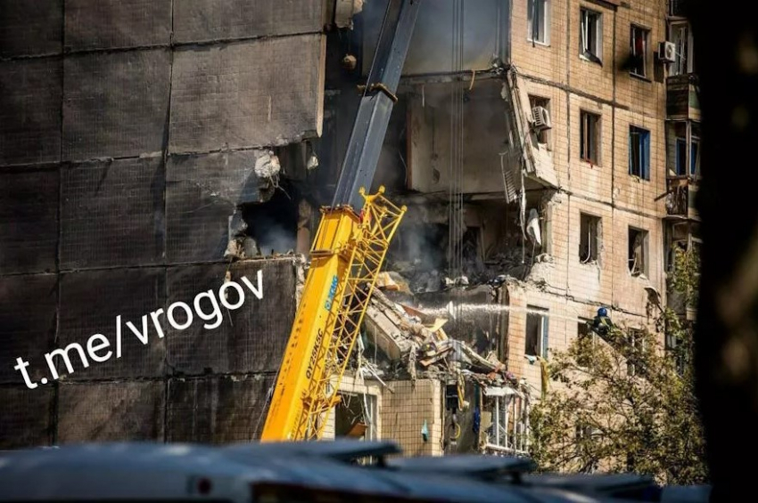 Жуткая картина разрушений в жилом доме свидетельствует о том, что попала именно ракета ПВО ВСУ. Угол здания был полностью снесен на уровне средних и верхних этажей, а степень разрушения явно указывает на применение боевой техники.