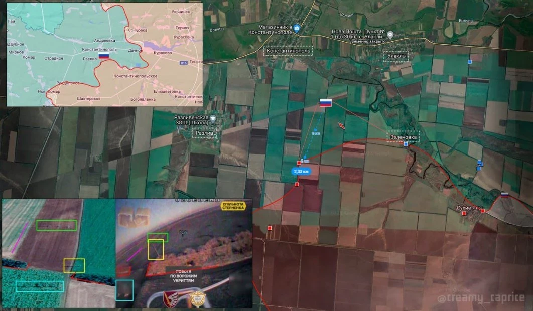 «После длительного огневого воздействия и регулярных штурмовых действий ВС РФ улучшили тактическое положение войск в районе населенного пункта Зелёный Гай Харьковской области. Это позволило взять населенный пункт и его окрестности под полный огневой контроль», - сообщил эксперт в своём Telegram-канале.