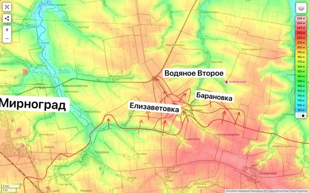 На восточном фланге, борьба идет за стратегическое село Барановку. После его освобождения, наши смогут продвинуться к населенным пунктам Тарасовка и Водяное Второе, а также закрепиться на развязке трассы Покровск - Константиновка. Эти обстоятельства позволят серьезно усложнить оборону противника между Покровском и Торецком.