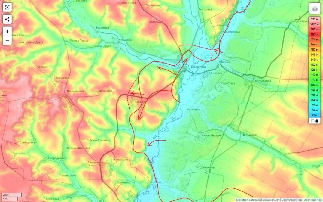 О нем, как об одной из приоритетных наших здесь целей я говорил уже давно. Как только на правом берегу Оскола сфоримровался относительно устойчивый плацдарм. Именно контроль н.п. Западное и высот рядом позволяют нам прикрыть переправы (а для стратегического наступления их здесь надо делать несколько) от прицельного огня ПТУРов и «стрелкотни». Заставляя привлекать к этому артиллерию и «Химари». А это опасно уже для них и рано или поздно приводит к подавлению пусковых установок и батарей.