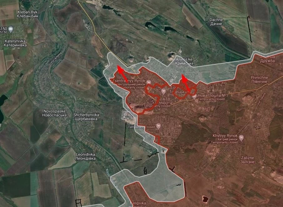 На Торецком направлении ВС РФ расширили контроль территории в пригороде Торецка, продвинулись в Крымском на глубину до 500м.