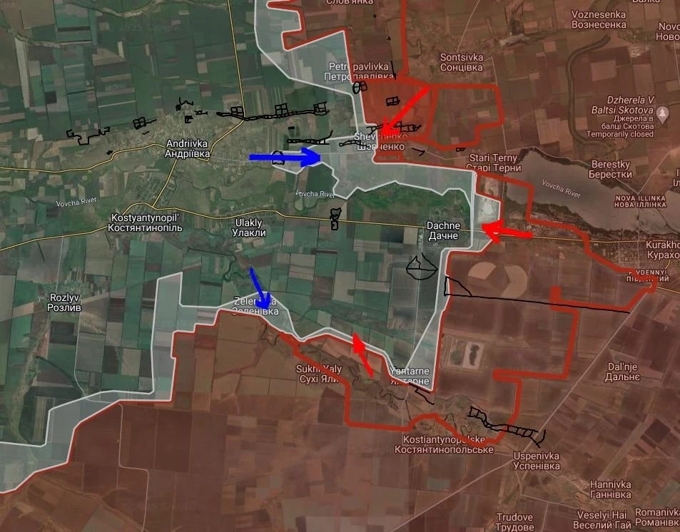 На Константинопольском направлении ВСУ контратакуют в районе Андреевки и Зеленовки, успехов не достигли.