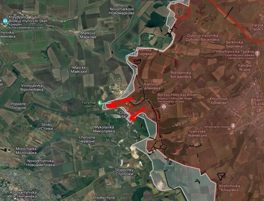 На ЧасовЯрском направлении российские войска продвинулись в мкр. «Новосеверный», ведут штурмовые действия южнее «Часовоярского огнеупорного комбината».