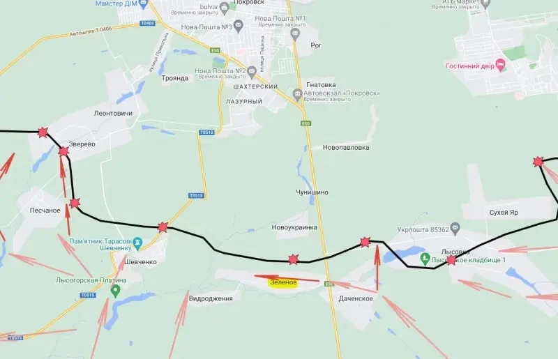 Между тем ситуация для ВСУ под Покровском становится если не критической, то очень сложной. Особенно на западном фланге, да и на восточном тоже. К западу от города наши начали расширять зону контроля, пройдя за Котлино, продвинувшись к трассе М-30, соединяющей Покровск с Павлоградом и Днепропетровском. По этой трассе идет основное снабжение украинского гарнизона. Две другие трассы Т-0406 и Т-0504 наши уже перерезали, а до дороги на Доброполье пока добраться тяжело, потому что она с севера Покровска.