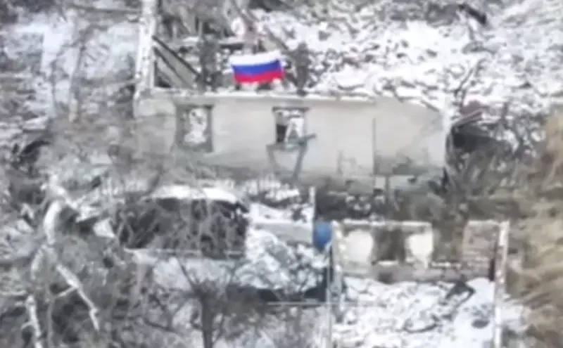 В сети показаны кадры, на которых запечатлен момент водружение флага России в освобожденном ВС РФ населенном пункте Новоегоровка на Сватовско-Кременном направлении.