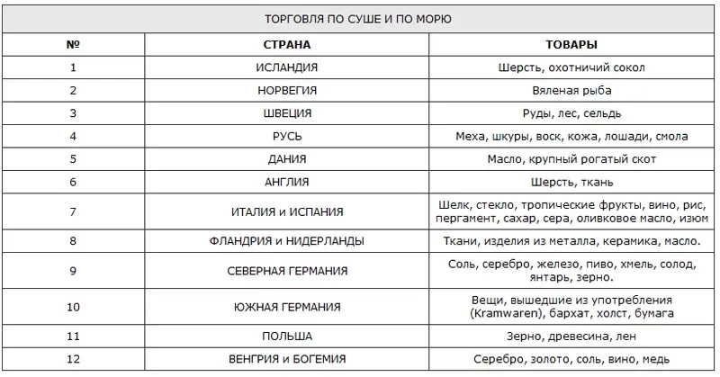 Купцы Готланда, большого острова в Балтийском море, были наследниками викингов, которые господствовали в Балтийском регионе до VIII века. Из Висбю* (административный центр острова Готланд) их торговля распространялась на восток до Новгорода, а оттуда вверх по русским рекам и вниз по Волге до Каспийского и Черного морей, где они уже столкнулись с купцами Византийской империи и вели дела в ее столице — Константинополе. Именно по проложенному ими маршруту восточные шелка и специи, а также византийская золотая монета, визант, стали известны на Западе. К XI веку эта торговля пошла на спад, но мелкомасштабная торговля все равно продолжалась между Скандинавией и восточной частью Балтийского региона, где конечным пунктом был русский город Новгород, где купцы создали свою торговую базу.
