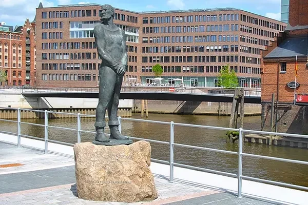 Двухтонный бронзовый памятник, возведенный в 1982 году, изображает Клауса Штёртебекера обнаженным и связанным непосредственно перед казнью. Тяжелая бронзовая статуя скульптора Хансйорга Вагнера (Hansjörg Wagner) олицетворяет уникальный случай, «когда город воздвигает памятник своему заклятому врагу и казненному преступнику». В настоящее время памятник выставлен перед Морским музеем Гамбурга на Магдебургерштрассе, а на ее постаменте есть надпись — «Друг Бога и враг мира».
