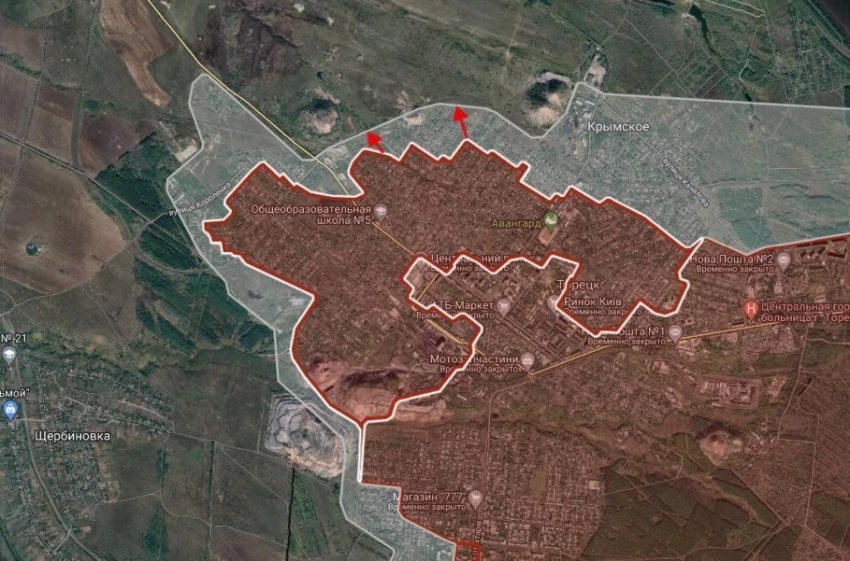 На Торецком направлении в Торецке ВС РФ давят в направлении террикона западнее шахты «Торецкая», а также в районе очистных сооружений, имеются тактические успехи в северной части города, сообщает "БелВПО".