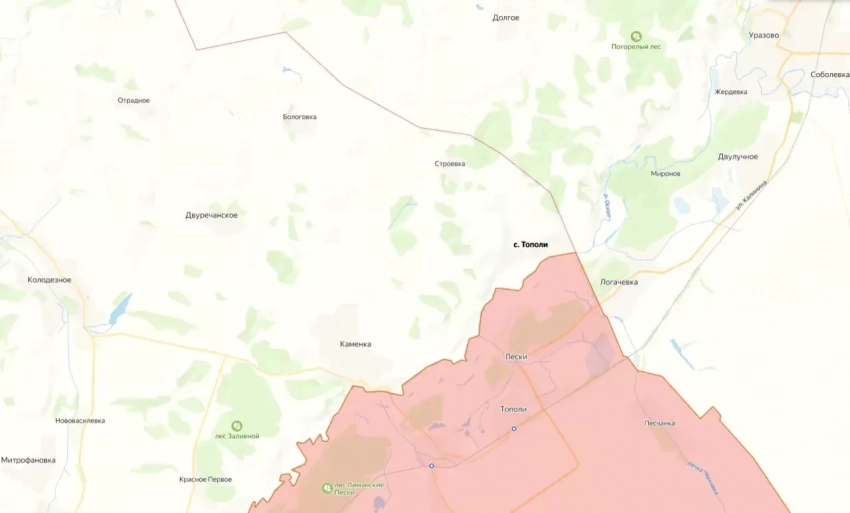 ВС РФ предприняли атаку в районе населенного пункта Тополи, находящегося на украинско-российской границе между Уразово (Валуйский район Белгородской области) и Двуречным (Харьковская область).