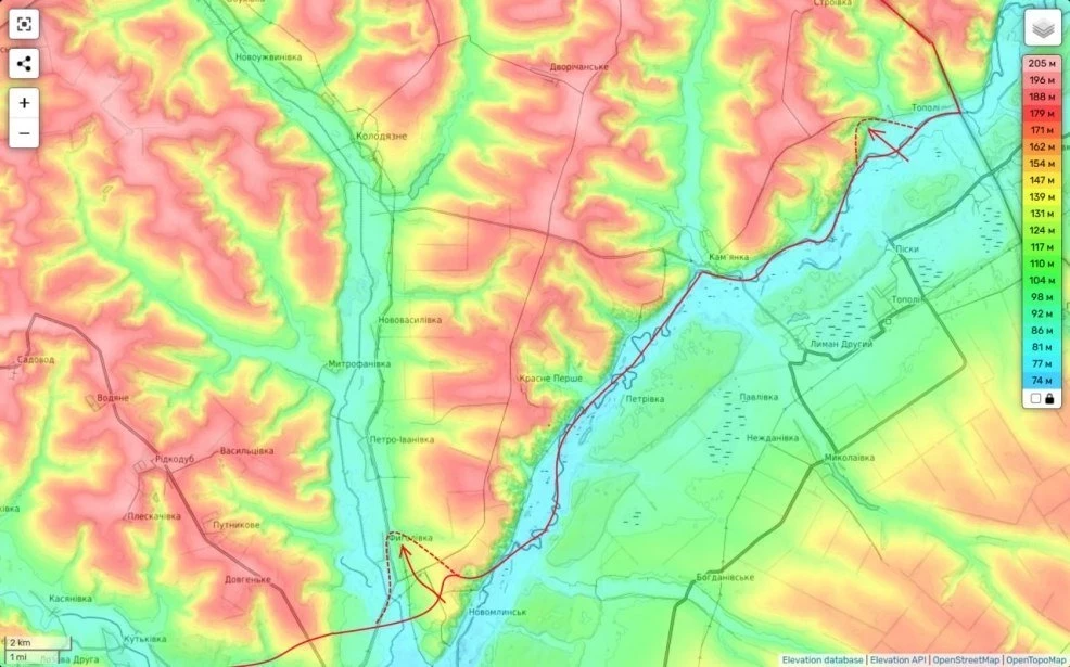 С учётом рельефа местности можно говорить о том, что Если даже в Фиголевке наших частей и нет (они там в низине особо не нужны), то противника там нет и подавно.