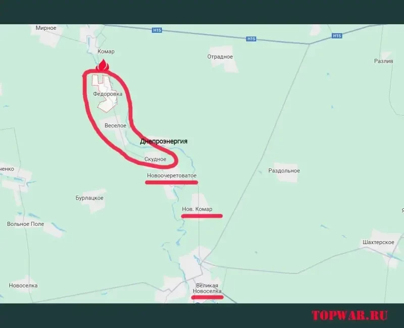 Одновременно с этим российские Вооружённые силы развивают успех на Великоновосёловском направлении. Идёт продвижение вдоль реки Мокрые Ялы к северу от ранее освобождённого Нового Комара.