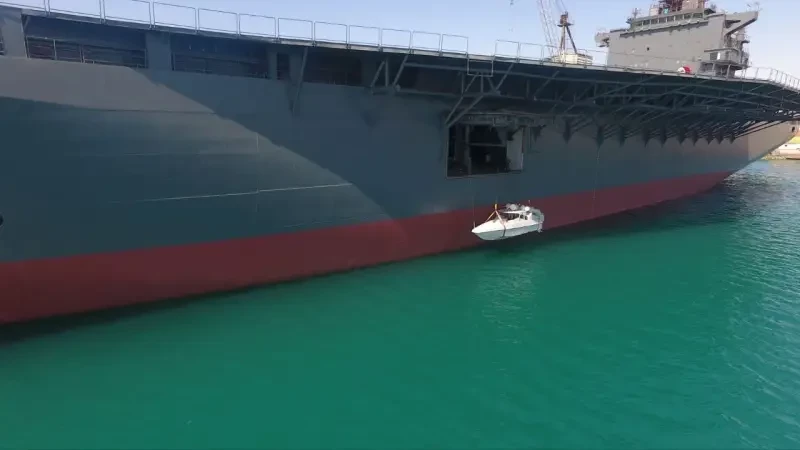 Об авиационных возможностях «Шахида Багери» мы поговорим отдельно в самом конце, а сейчас отметим, что корабль можно использовать в качестве УДК. На снимках «Шахида Багери» видна возможность спуска на воду и подъёма небольших катеров с помощью шлюпбалок через большие порталы, закрытые створками по обеим сторонам корпуса. Есть информация, что внутри корабля может разместиться до 30 различных катеров и лодок.
