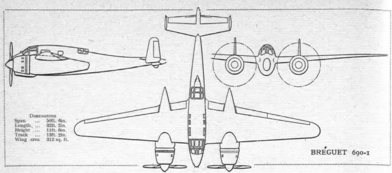Однако и после официального заказа строительство не продвинулось — в течение почти года (источники называют сроки от 8 до 12 месяцев; истина, видимо, посередине) прототип терпеливо ждал поставки обещанных двигателей Hispano-Suiza 14Ab. Как такое было возможно, не берусь судить, почему Луи Бреге и главный конструктор Жорж Рикар не пытались установить моторы 14М — тоже. Иногда пишут, что эти двигатели были зарезервированы для истребителей P.631, но для H.220 фирмы Hanriot пара моторов все-таки нашлась. Забегая вперед, можно сказать, что именно эта задержка поставила крест на успешной карьере самолета. Лишь к началу 1938 года постройка прототипа была завершена, и 23 марта Breguet Br.690.01 совершил свой первый полет. Заводские испытания прошли успешно, и в июне машина была доставлена на государственные испытания в испытательный центр французских ВВС (CEMA — Centre d'Essais de Matériels Aériens) в Виллакубле.