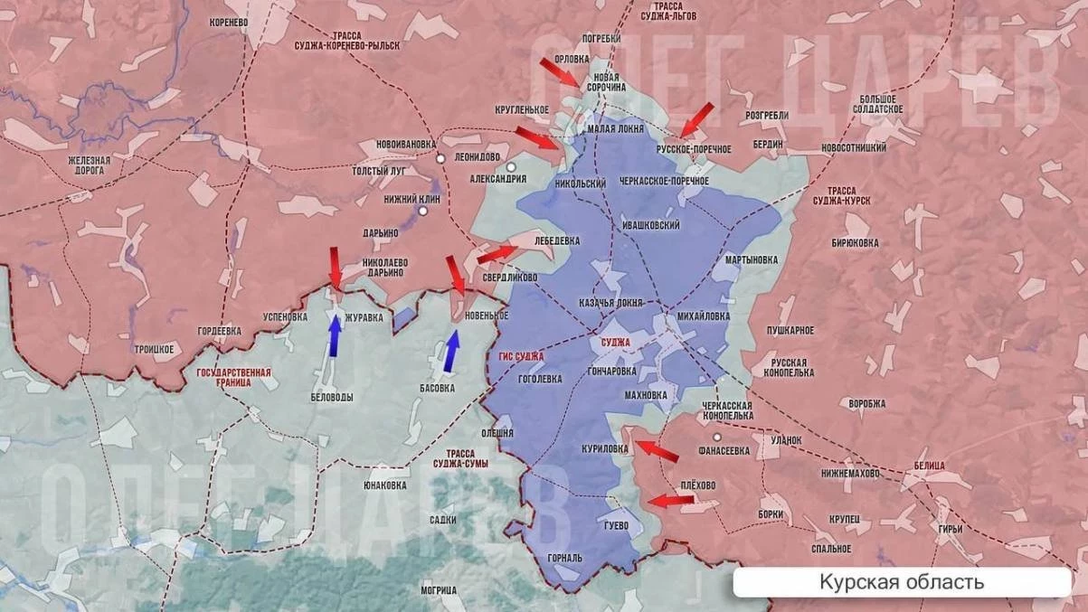 На восточном фланге идёт сражение за Черкасское Поречное, тут противник сопротивляется упорно. Поражение на этом участке означало бы «котел» для группировки ВСУ в Малой Локне, пишет Олег Царёв в своём Telegram-канале.