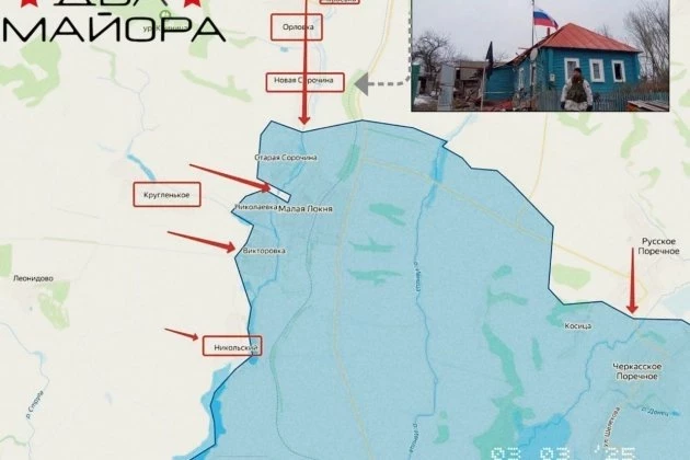 Опубликована новая карта боевых действий в Курской области по состоянию на понедельник, 3 марта 2025