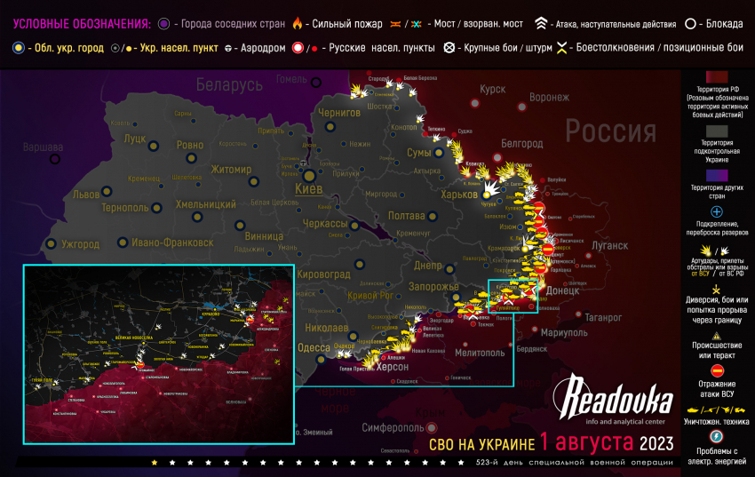 Карта военных действий и ситуация на фронтах вечером 1 августа от Телеграм-канала «Readovka»