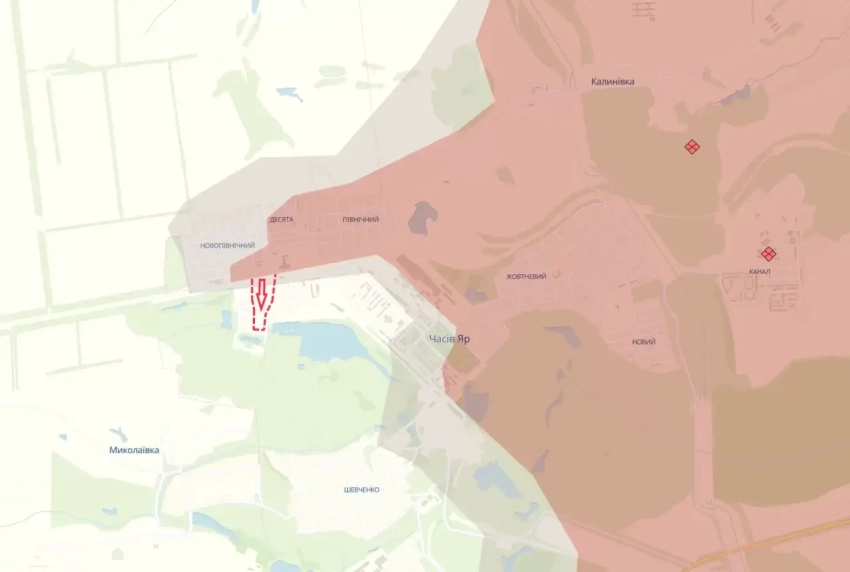 ВС РФ провели атаку в западной части Часов Яра, оттеснив ВСУ за Днепровский пруд