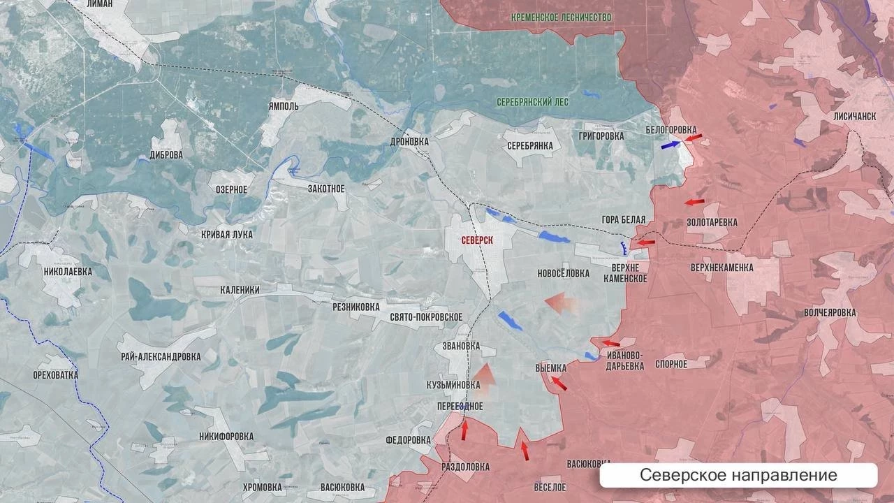 На Северском направлении российские войска продвинулись на 700 м западнее рубежа Верхнекаменское-Григоровка. С мест сообщают, что ВСУ наращивают свою группировку в Северске.