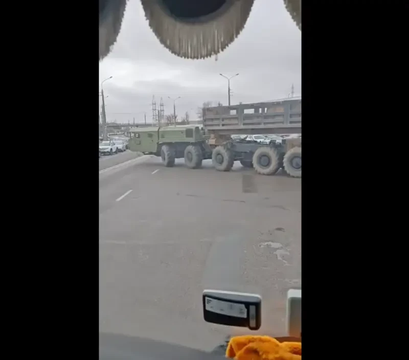 В Белоруссии во время выезда с территории Минского завода колесных тягачей очевидцы сняли на видео необычное самоходное шасси. Как предполагают специалисты, это может быть тот самый тягач, который в настоящее время разрабатывается для российской БРСД «Орешник».